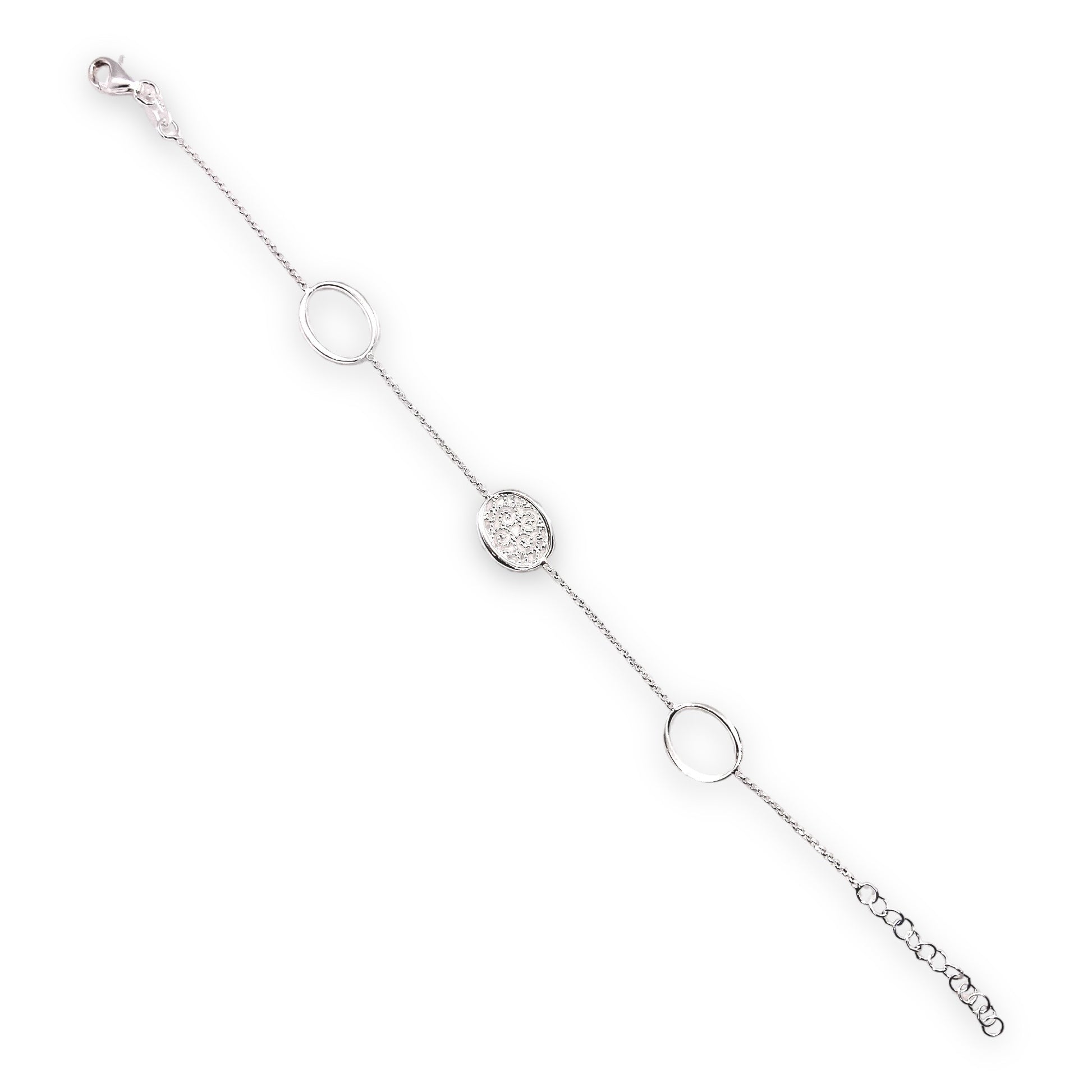 Clever designt aus hochwertigem 925er Sterling Silber, besticht dieses Armband mit zwei Ringen und einem Ornament in der Mitte und hat 19cm Länge inkl. praktischem Verlängerungskettchen von 3cm, dh hier ist eine Gesamtlänge von bis zu 22cm möglich.