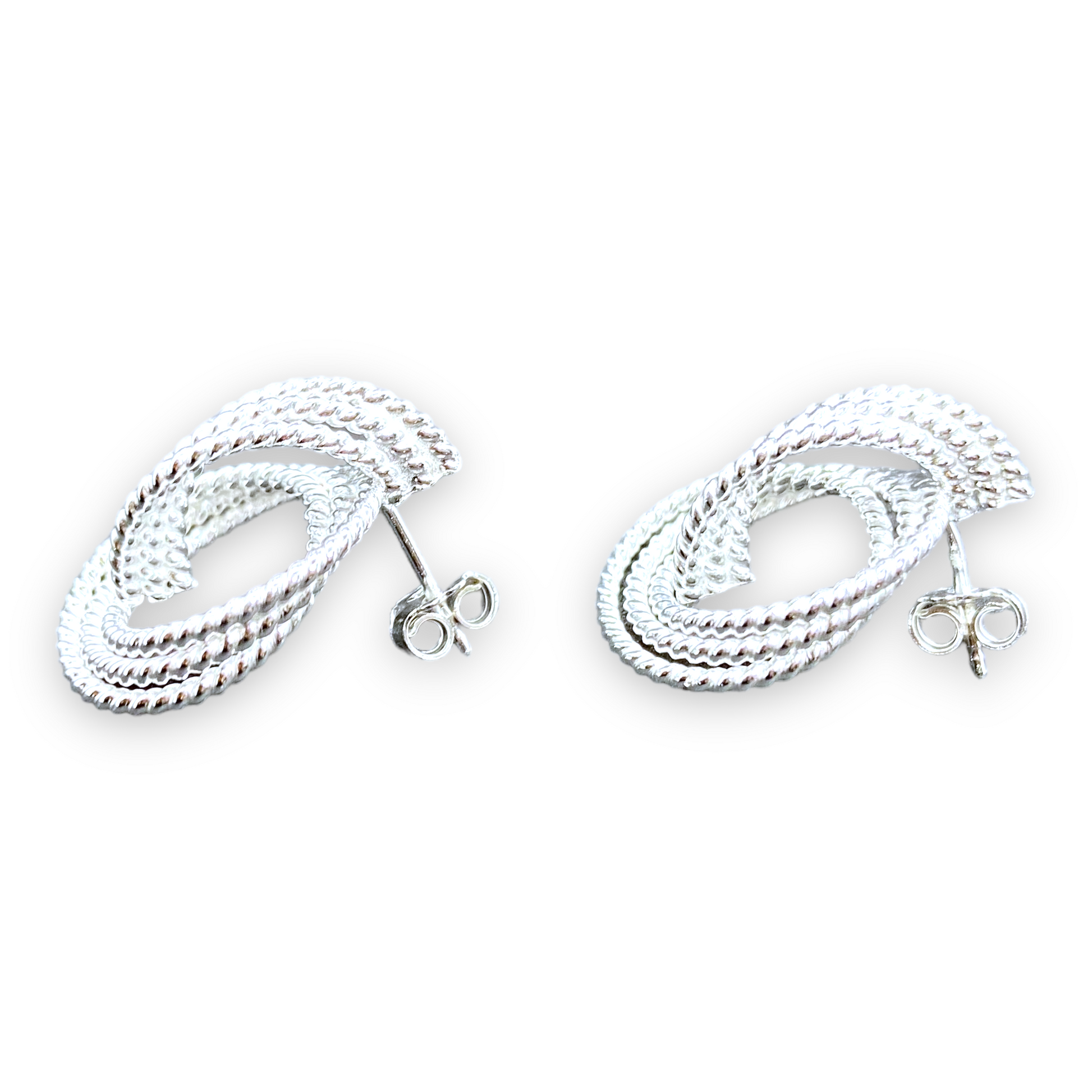 Edle Ohrstecker von sechs zusammengedrehten Ringen im Knoten- aus hochwertigem 925er Sterling Silber, ideal für den besonderen Anlass zum Abendkleid oder für den Cocktail bei der After Work Party.
